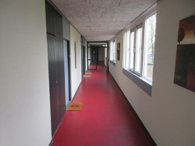 Hieronder zie je twee voorbeelden van besloten gemeenschappelijke verkeersruimtes. Dit zijn slechts voorbeelden. Het kan zijn dat de gemeenschappelijke verkeersruimtes in jouw woongebouw er anders uit zien. Twijfel je of jouw appartement grenst aan een besloten gemeenschappelijke verkeersruimte? Wacht dan de inspectie van GBB af.